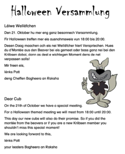 « All Events This event has passed. Meeting & Promise for new Cubs October 21, 2023 @ 18:00 - 20:00 « Meeting Meeting » Add to calendar Google Calendar iCalendar Outlook 365 Outlook Live Details Date: October 21, 2023 Time: 18:00 - 20:00 Event Category: Wellefcher Venue HQ Kriibsen 9a, rue Albert Bousser Alzingen, L-5894 Luxembourg + Google Map